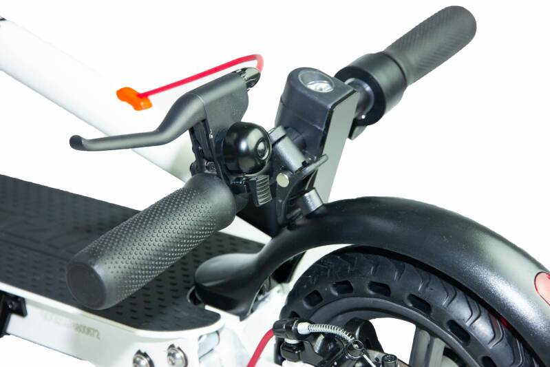 Wanneer de step remt knippert het achterlicht zodat duidelijk zichtbaar is dat de step vaart verminderd. Door de reflectoren aan de zijkant ben je in het donker ook goed zichtbaar voor het verkeer. De banden zijn zo ontworpen dat de niet lek kunnen gaan, ze zijn gemaakt van 100 procent rubber, zo sta je dus nooit met een lekke band en kom je veilig thuis. Het remsysteem is zo ontwikkeld dat je binnen 4 meter helemaal stil staat en kan worden aangepast in remkracht. Ook is er in het ontwerp gekozen voor een spatbord zodat opspattend vuil niet op je mooie kleding terecht komt.